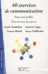 Claudie Grantham, Auteur ; Katherine Legay, Auteur ; François Martel, Auteur | Chronique Sociale | Savoir communiquer | 2010A travers 40 exercices, les auteurs ont privilégié la réflexion, l'analyse de fonctionnements individuels et collectifs qui donnent la possibilité ensuite aux participants de se construire petit à petit, en comprenant ce qui se passe en eux ou c[...]Exemplaires (1)